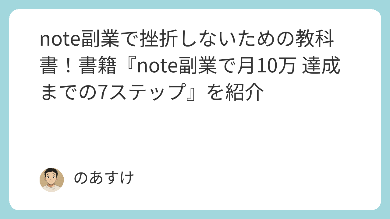 note副業で挫折しないための教科書!『note副業で月10万 達成までの7ステップ』を紹介
