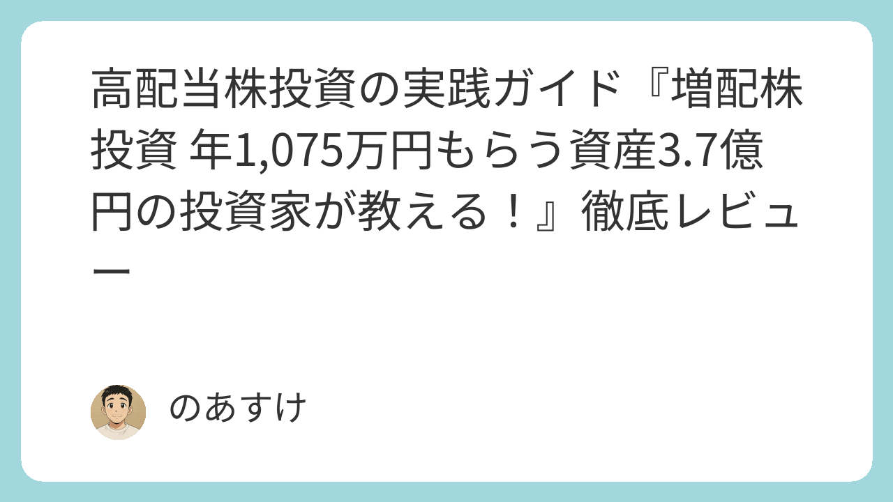 高配当株投資の実践ガイド『増配株投資 年1,075万円もらう資産3.7億円の投資家が教える!』徹底レビュー